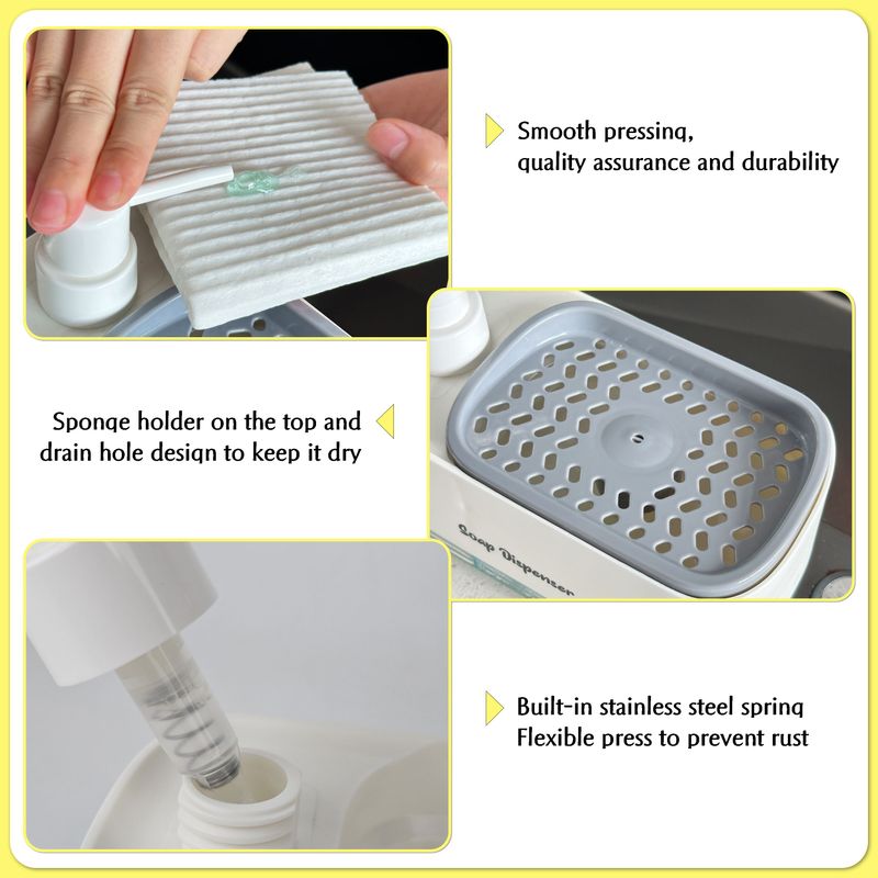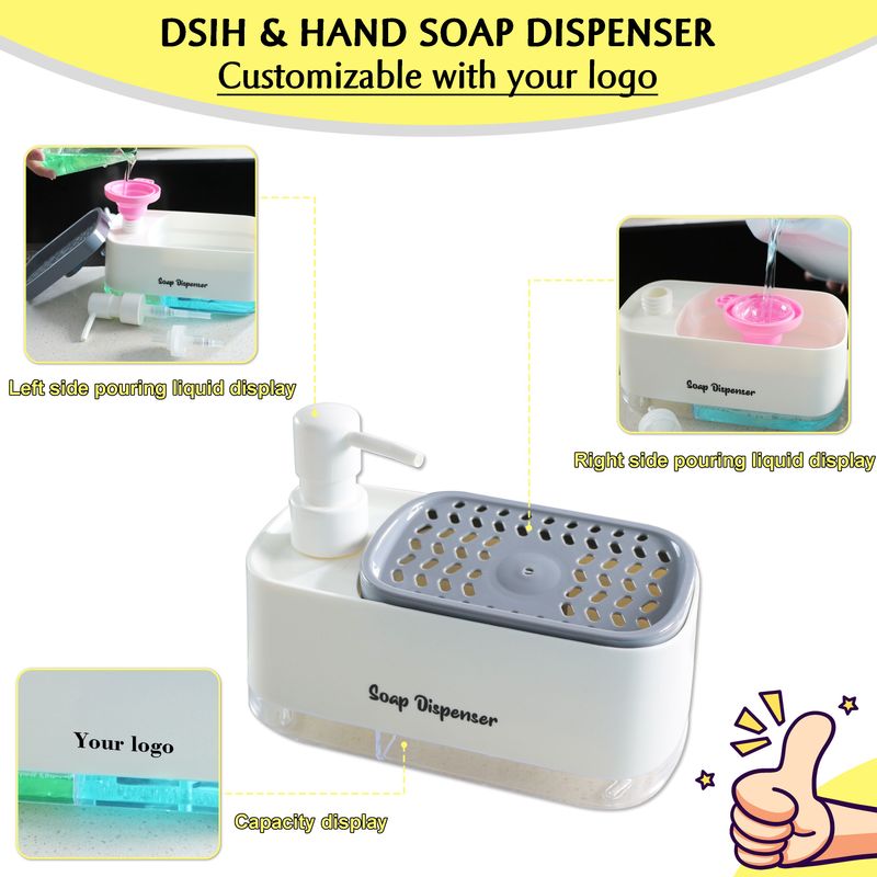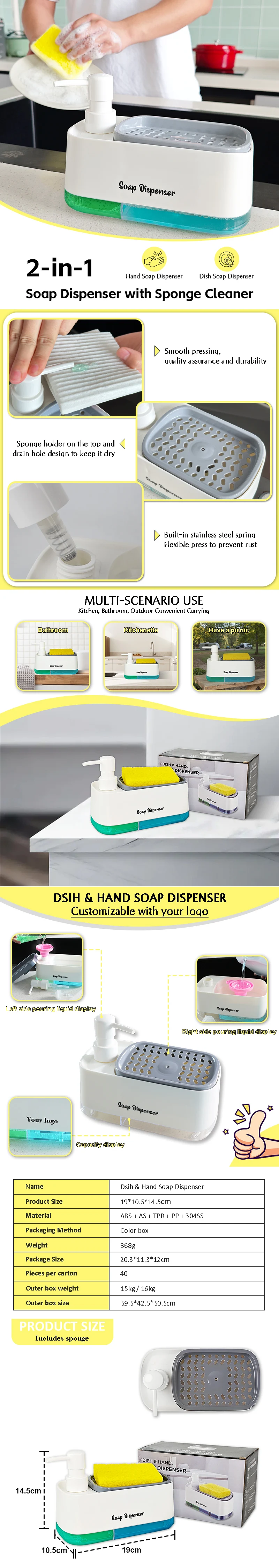2-in-1 Plastic Double Soap Dispenser Hand Sponge Holder Dish Wash Box for Home Hotel Bathroom Kitchen Use Bath