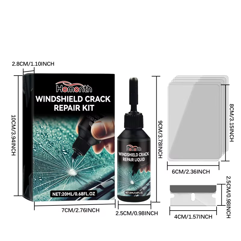 Our automotive glass care kit contains UV glue.