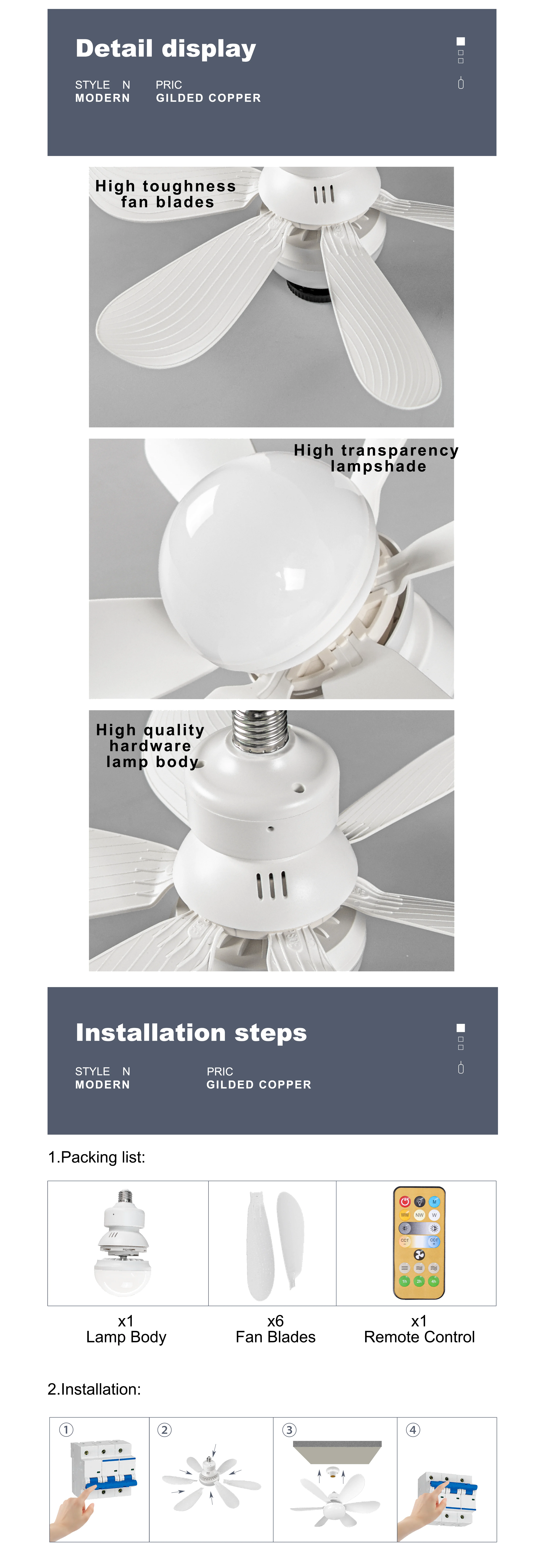 50% OFF Dimmable Light Modern Ceiling Mount Remote Control Ceiling Smart E27 Led Ceiling Fan Light