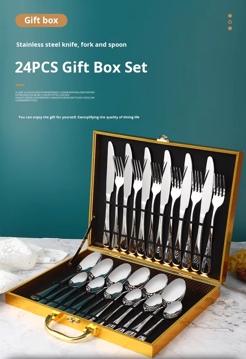 A 24-piece cutlery set, suitable for weddings, festive banquets, Christmas parties, and gift-giving.