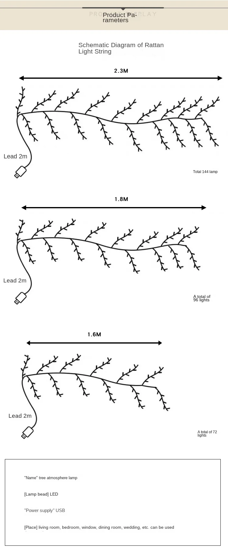 [usb remote control] 2.3meters 144lights