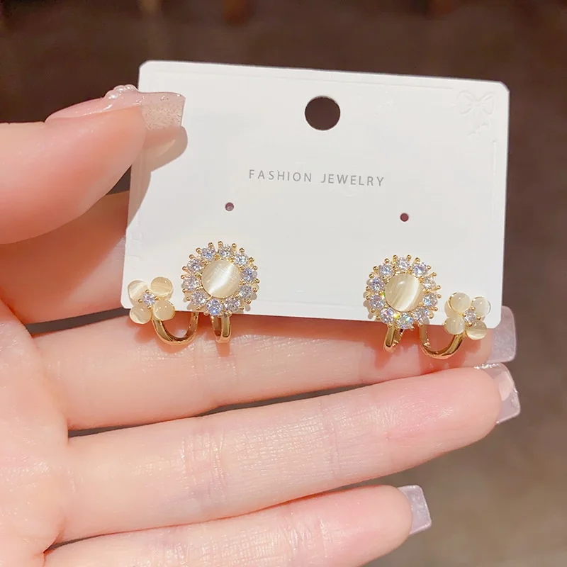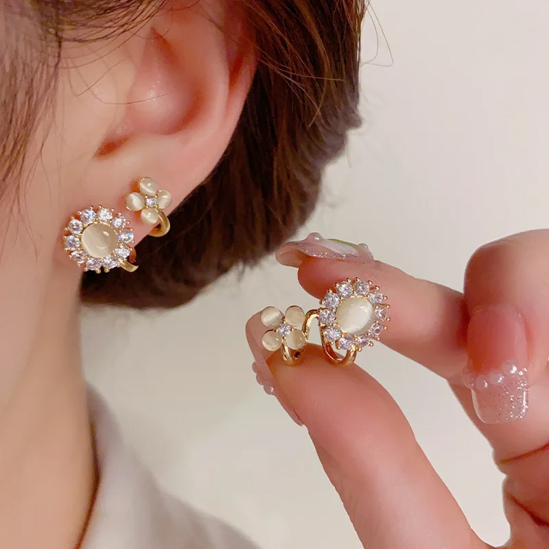 50% OFF Light Luxury Fashion High-end Simple Cat's Eye Stone Flower Alloy Earrings