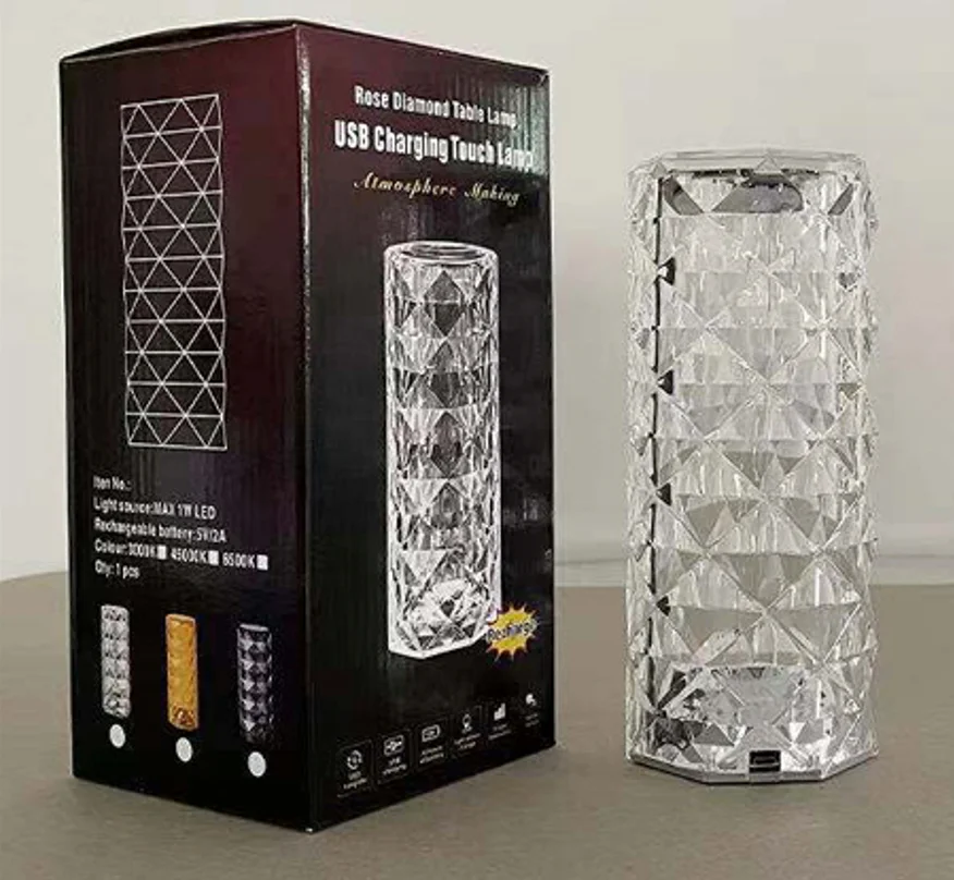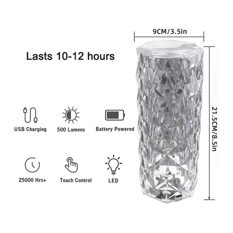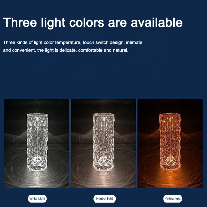 ⏰3 Colors Changing RGB Touch Sensor Rose Crystal Table Lamp USB Rechargeable Romantic LED Rose Crystal Desk Lamps