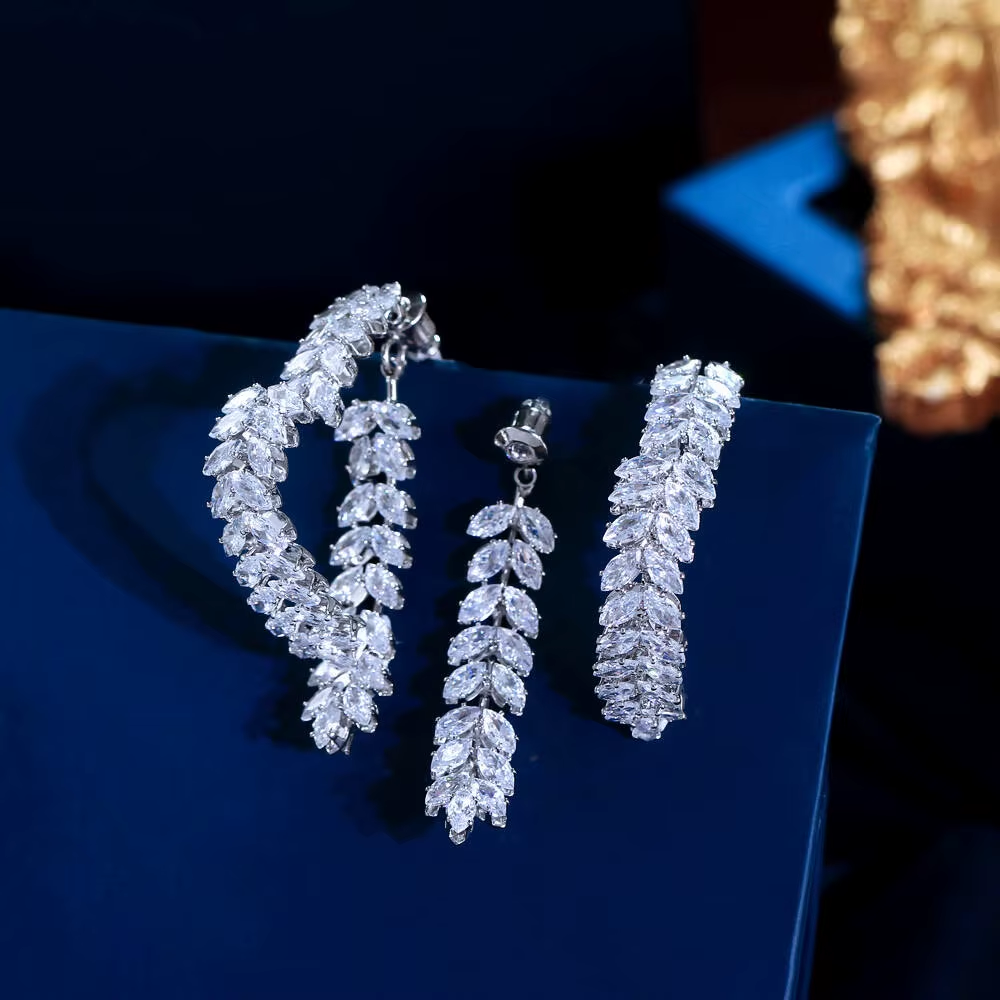New Design Luxury Zircon Flower Stud Earrings for Women Fashion Brand Jewelry Double Used Crystal Leaves Earrings