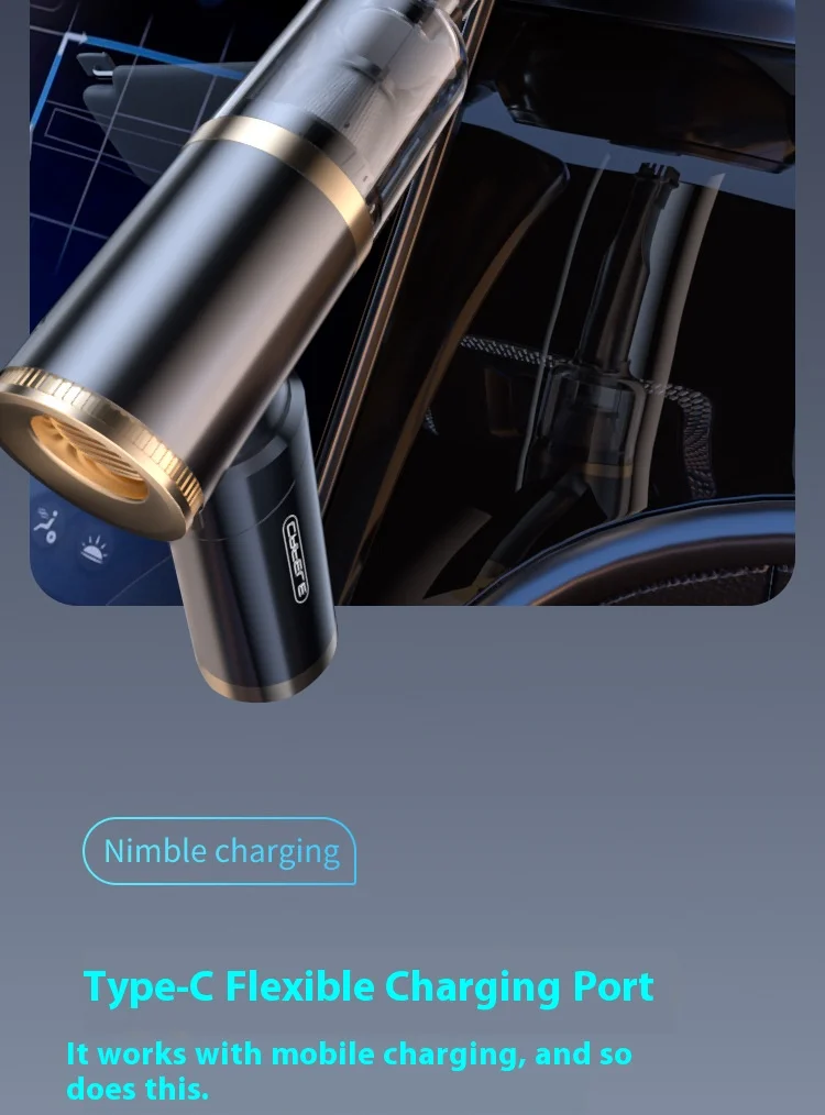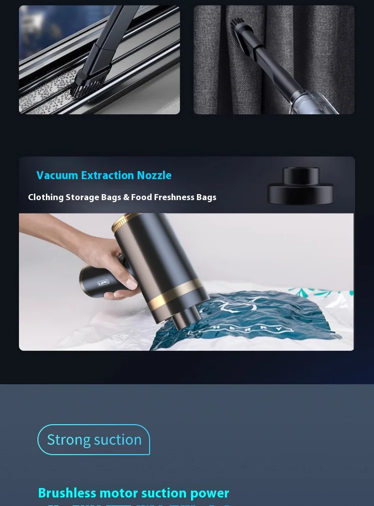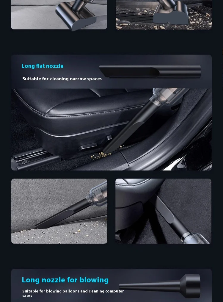 Portable Mini Handheld High Suction Blowing Integrated Black Car Vacuum With Light Wireless Vacuum Cleaner with Mop