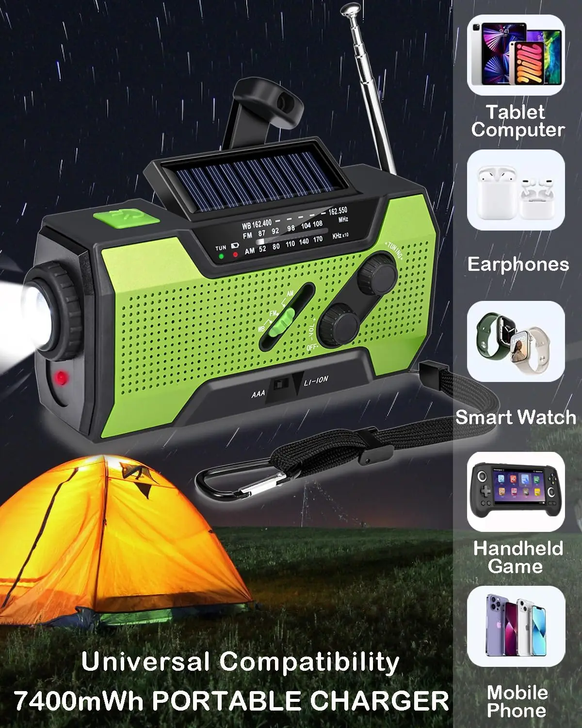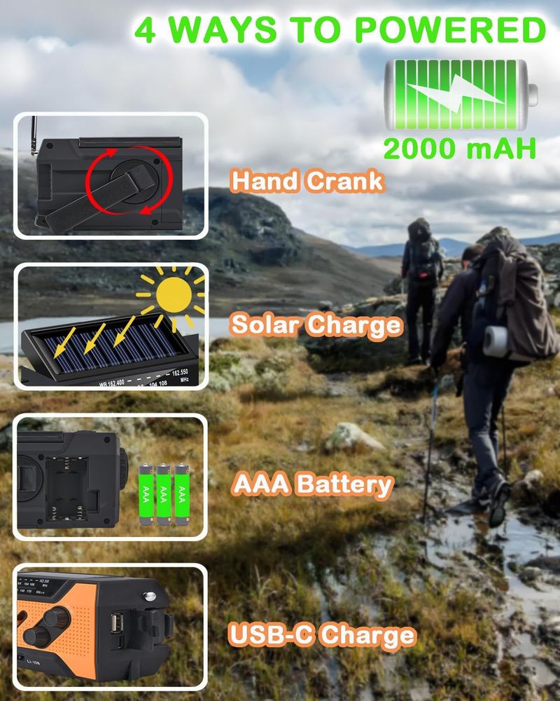 1. [2000MAH POWER BANK WILL KEEP DEVICES POWERED]emergency radio incorporates a 2000mAh power bank capable of providing emergency power to any small tablet or phone.