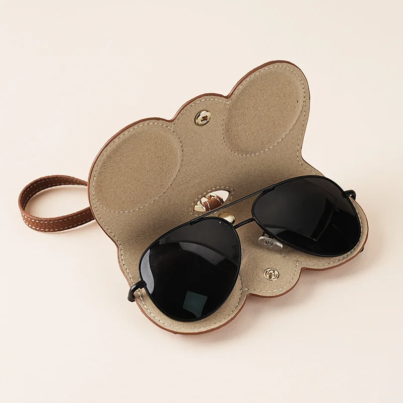 Portable Retro Handmade PU Leather Glasses Bag with Lanyard Hanging Sunglasses Case Simple Glasses Storage Box Sunglasses Case