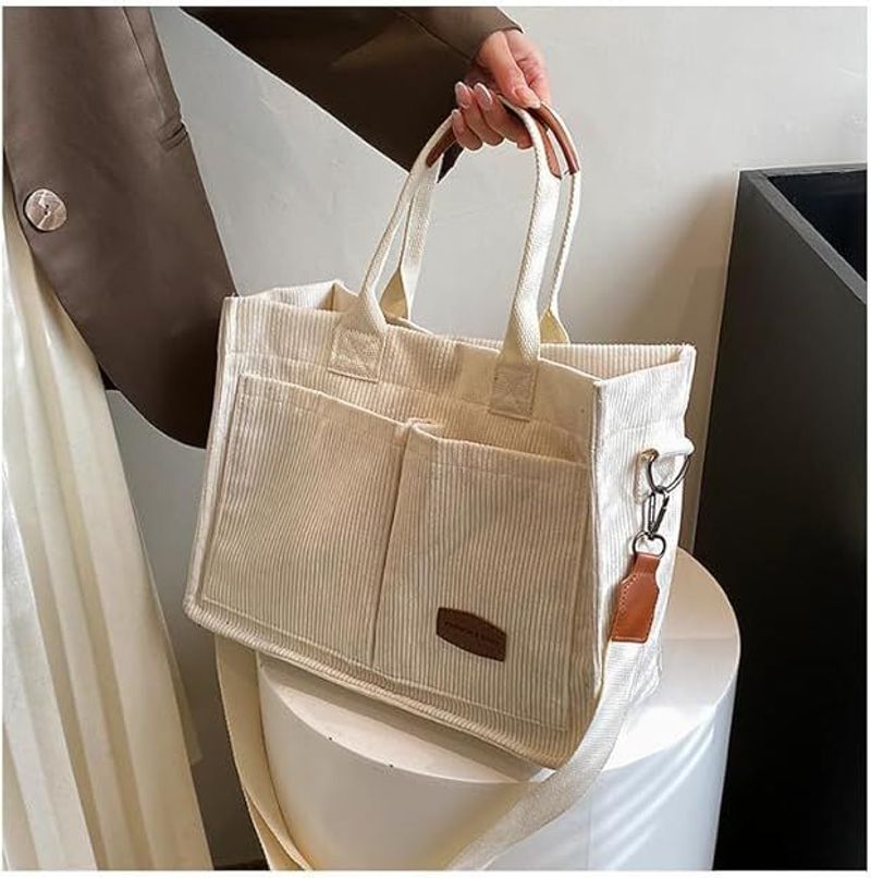 Roomy Corduroy Tote Bag with Wide Shoulder Strap for Women - 2025 Collection