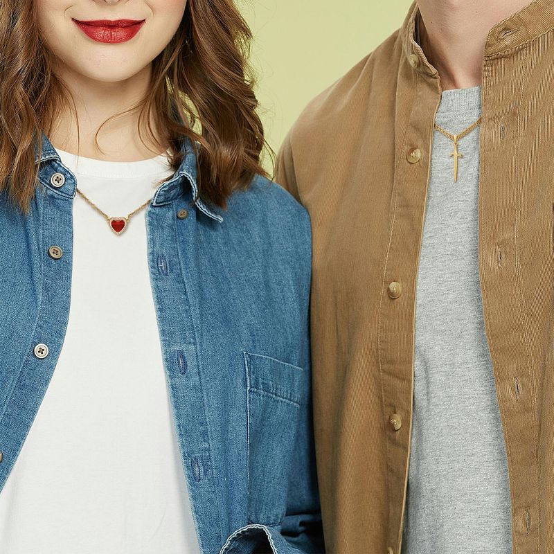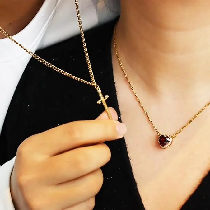 Sword and Heart Necklace Set 18K Gold Plated Stainless Steel Anti Tarnish Zircon Love Pendant Necklace for Couple