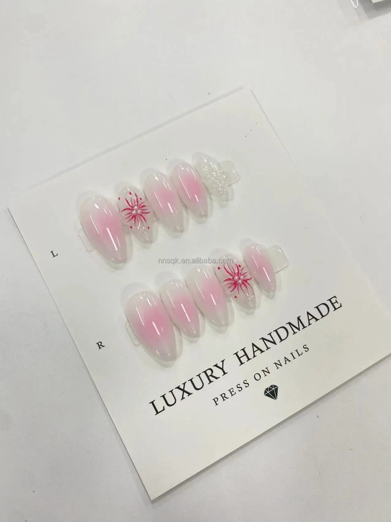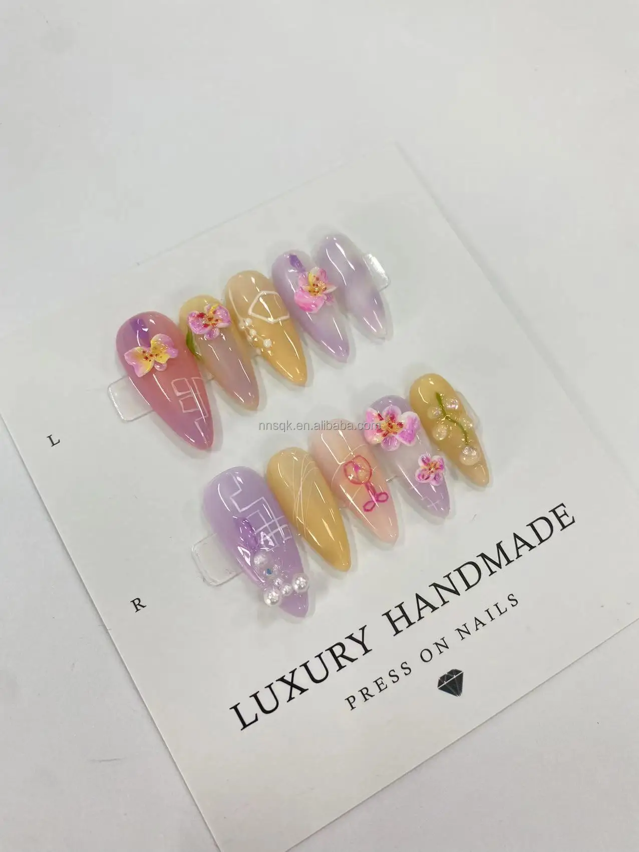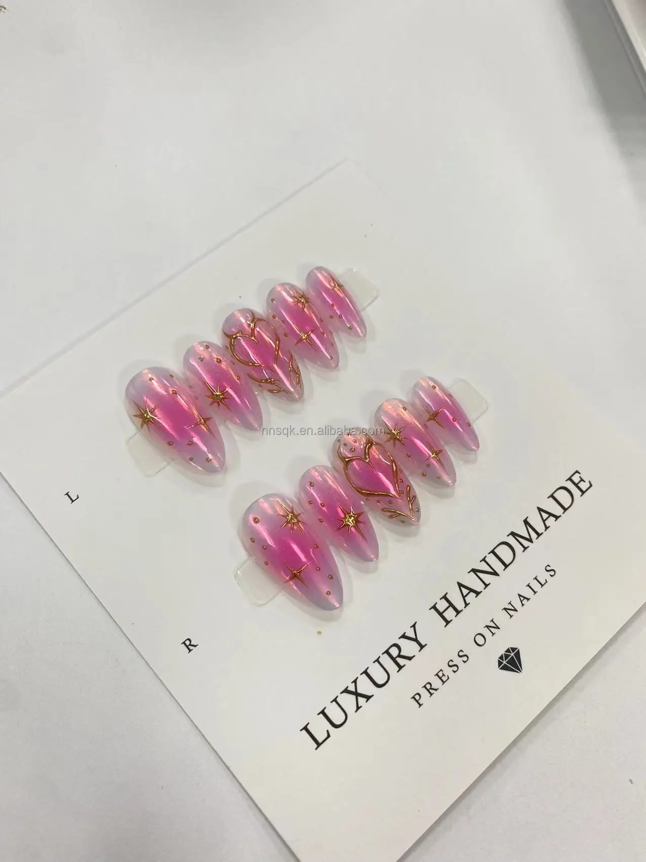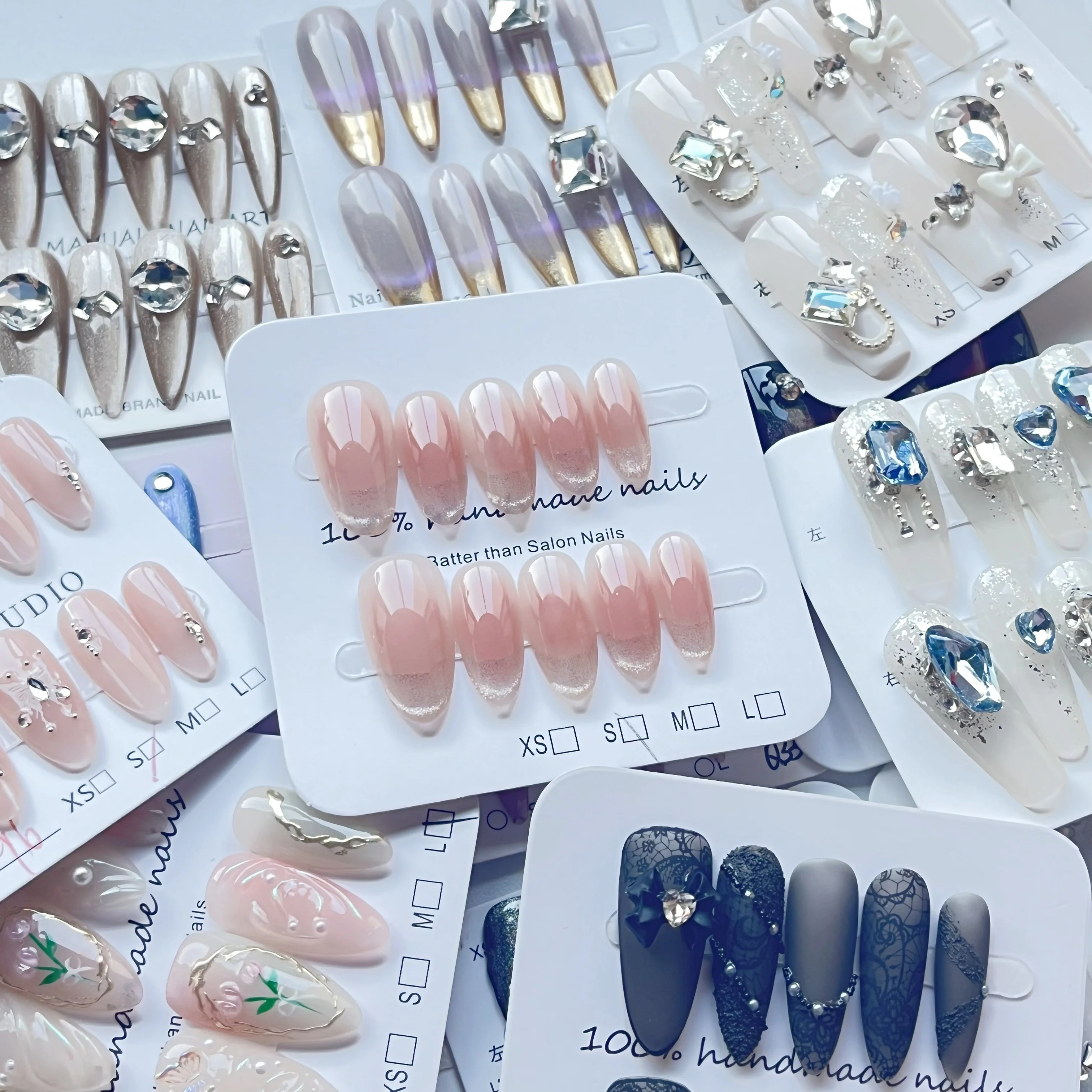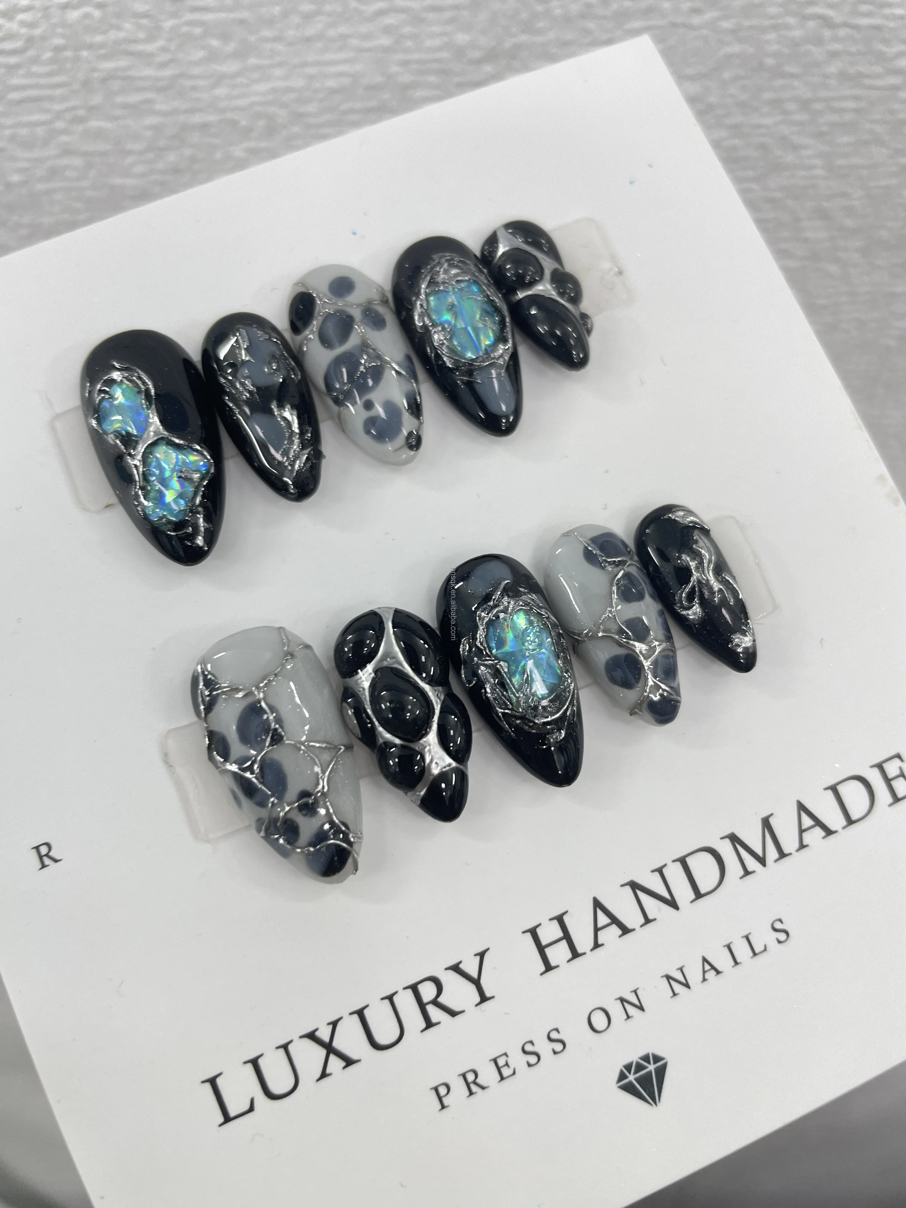 The new handcrafted, custom-made press-on nails are reusable, offering a high-end, luxurious feel.