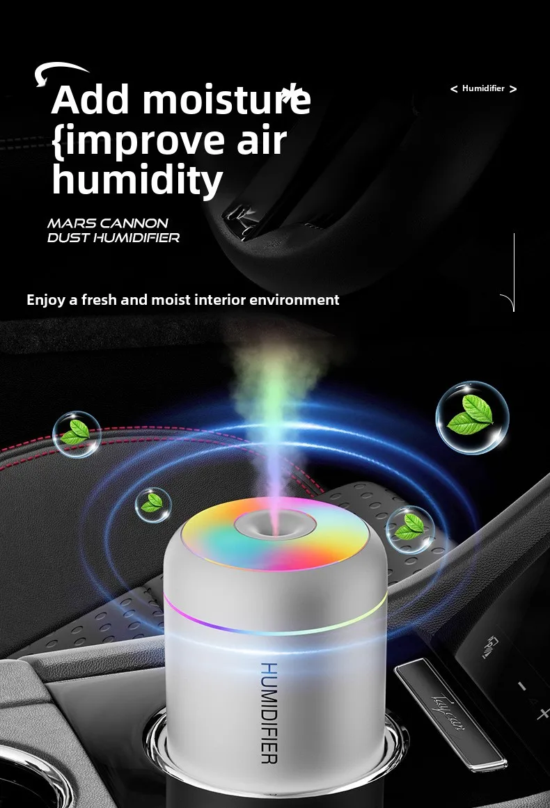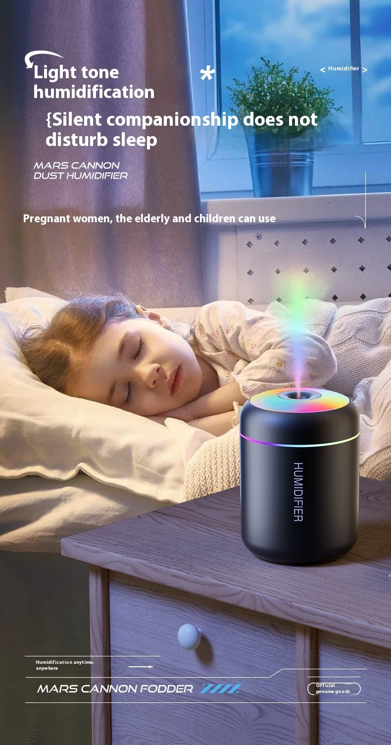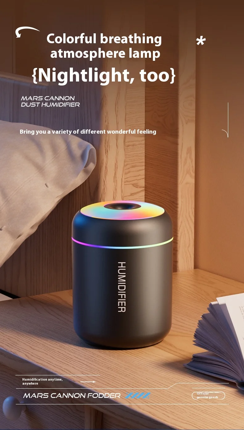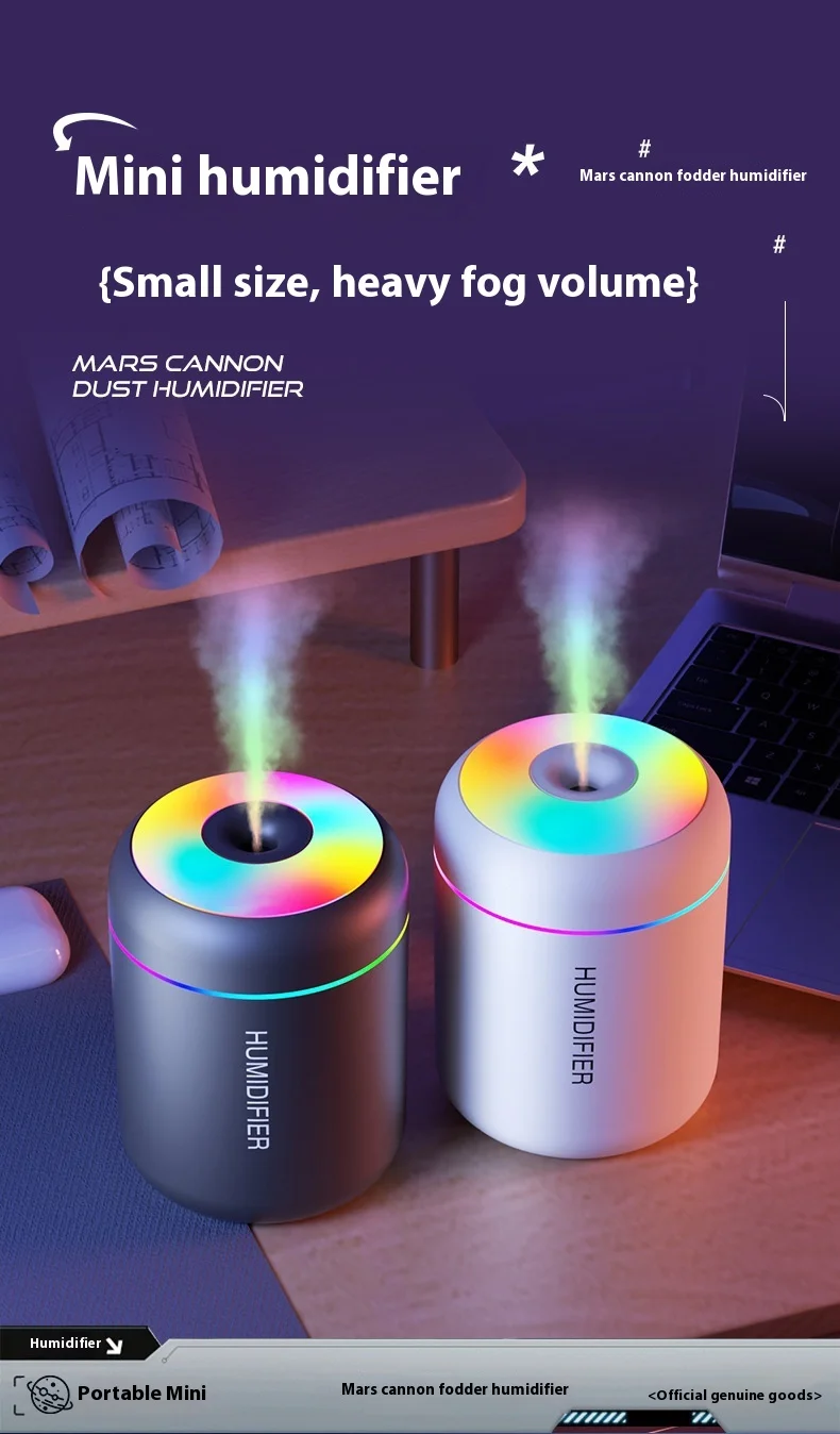 USB Mini Cannonball Humidifier Large Mist Volume Colorful Ambient Light Aromatherapy for Home Air-conditioned Space Plastic