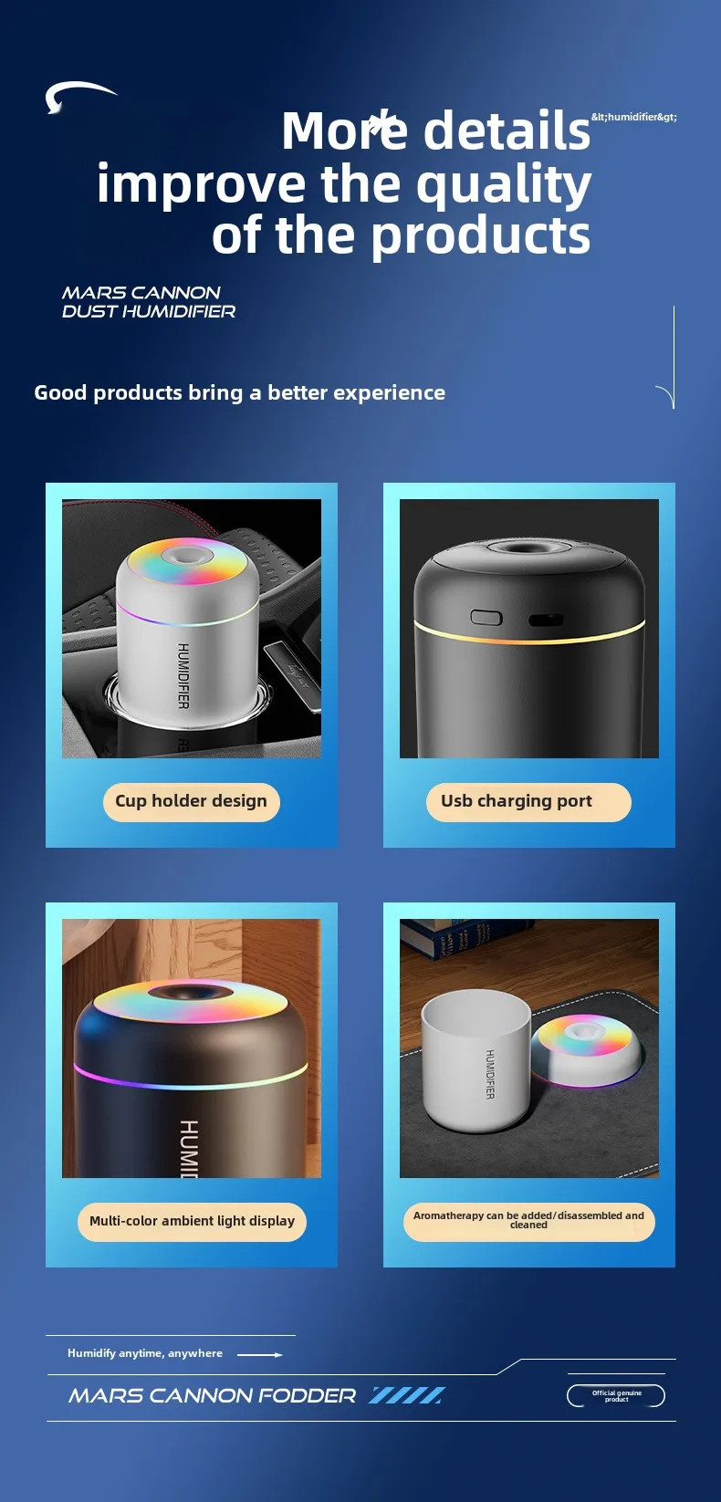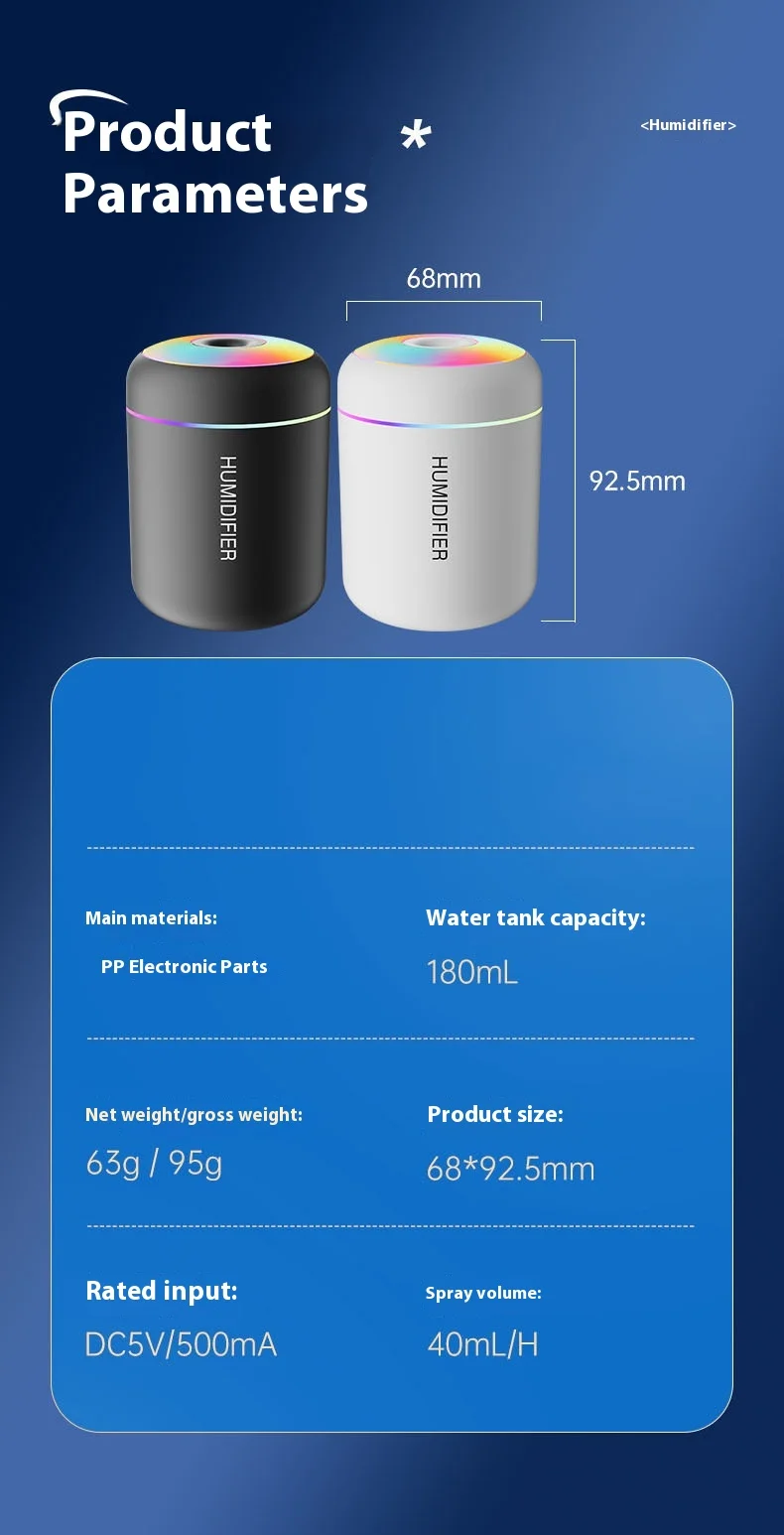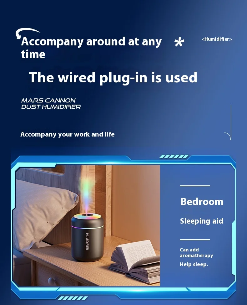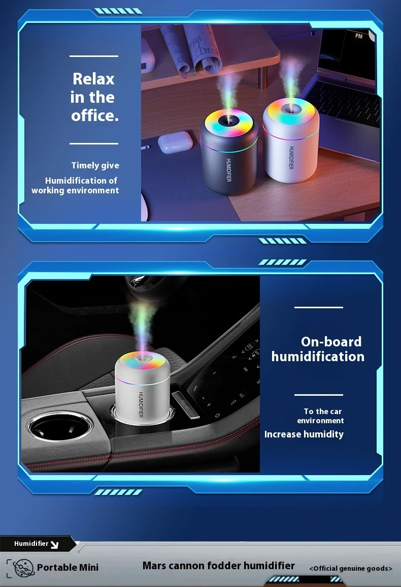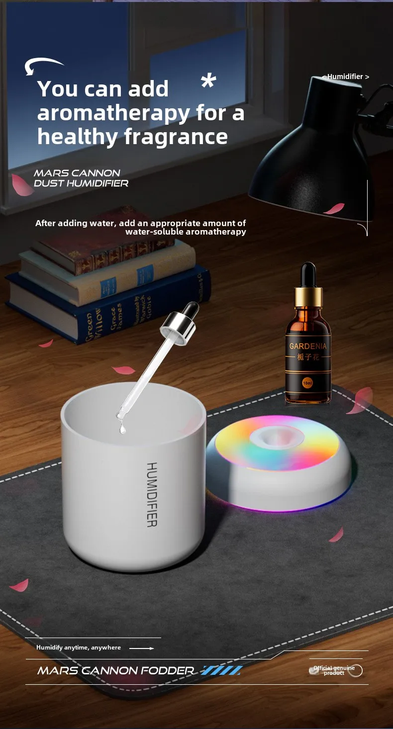 USB Mini Cannonball Humidifier Large Mist Volume Colorful Ambient Light Aromatherapy for Home Air-conditioned Space Plastic