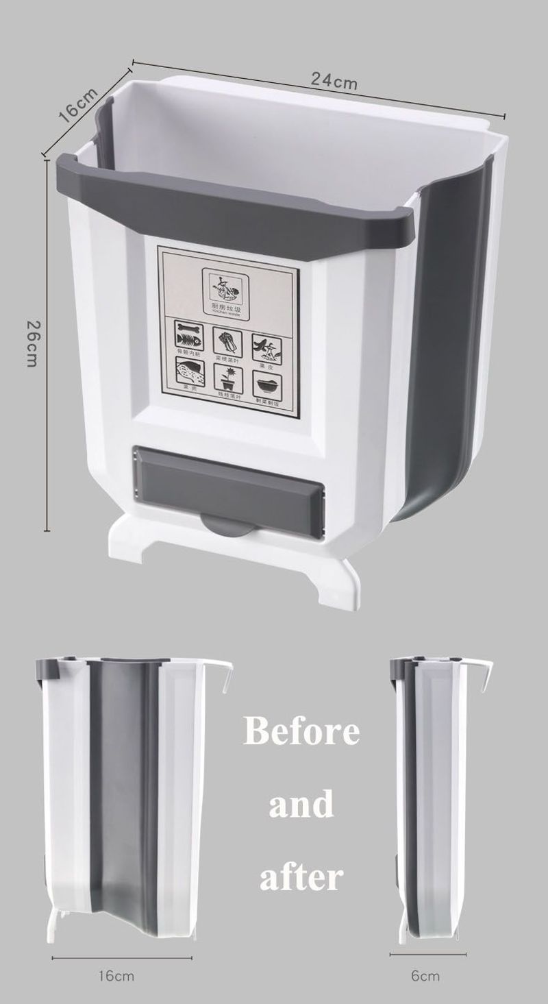 Wall Mounted Trash Bin Plastic Desktop Hanging Kitchen Trash Can Foldable Home Food Kitchen Waste Bin